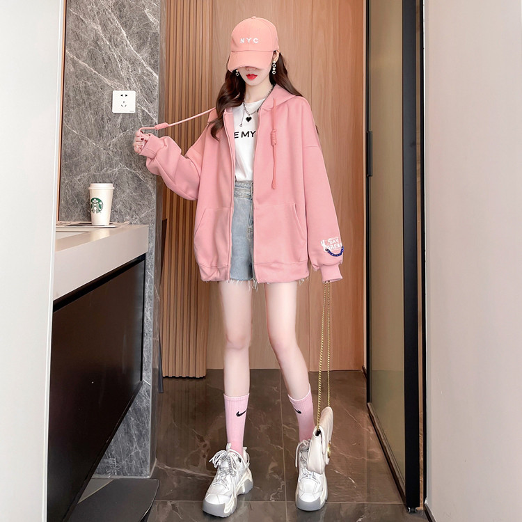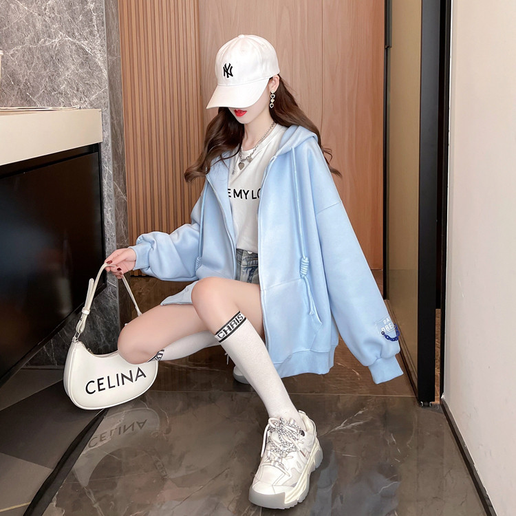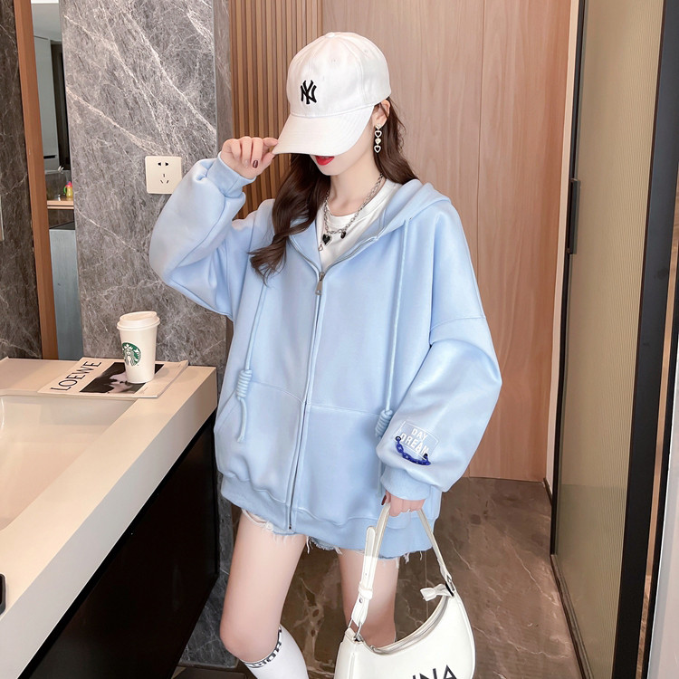 • 商品名称:秋冬装新款连帽卫衣女开衫大码宽松设计感慵懒风外套
