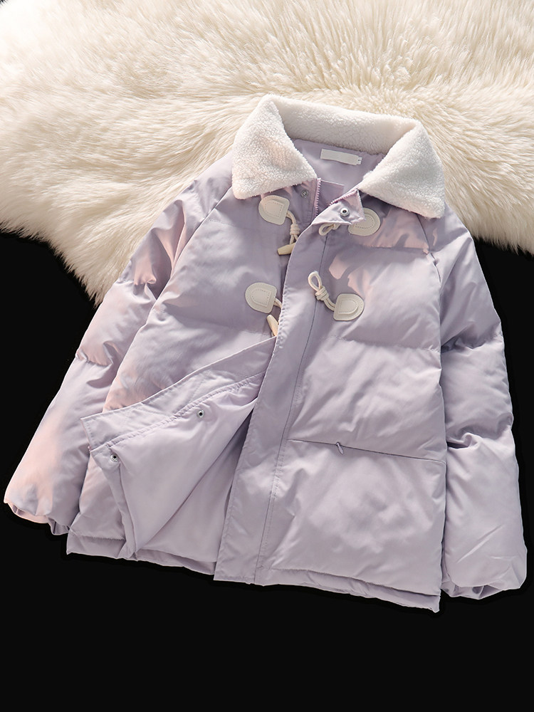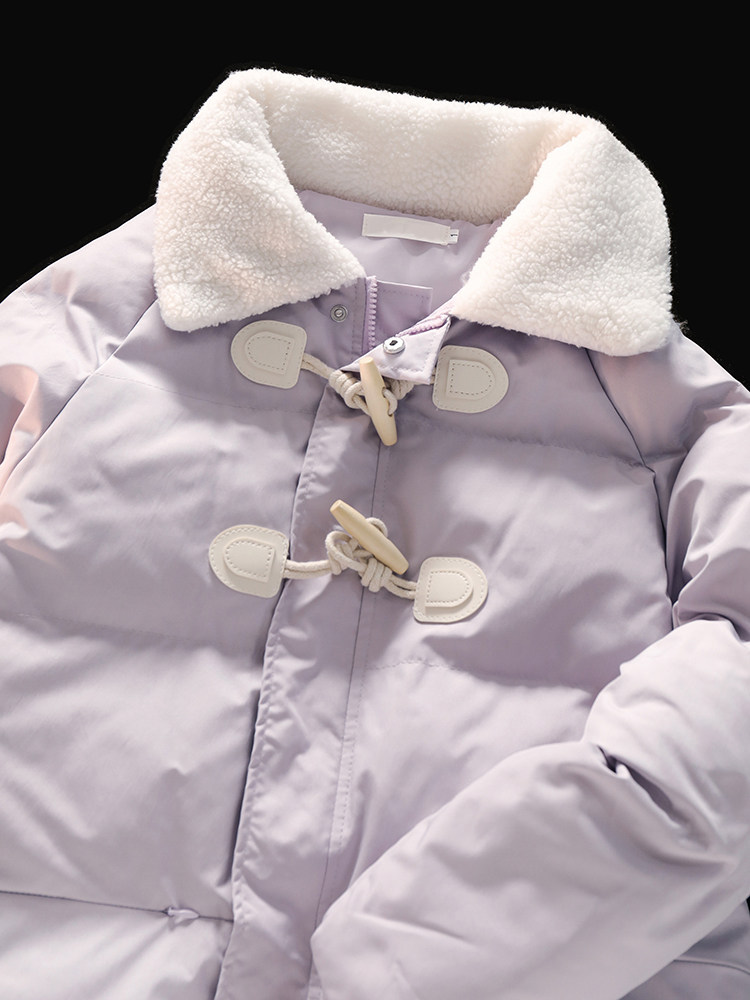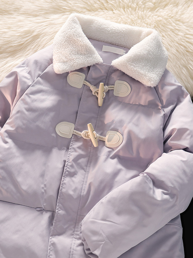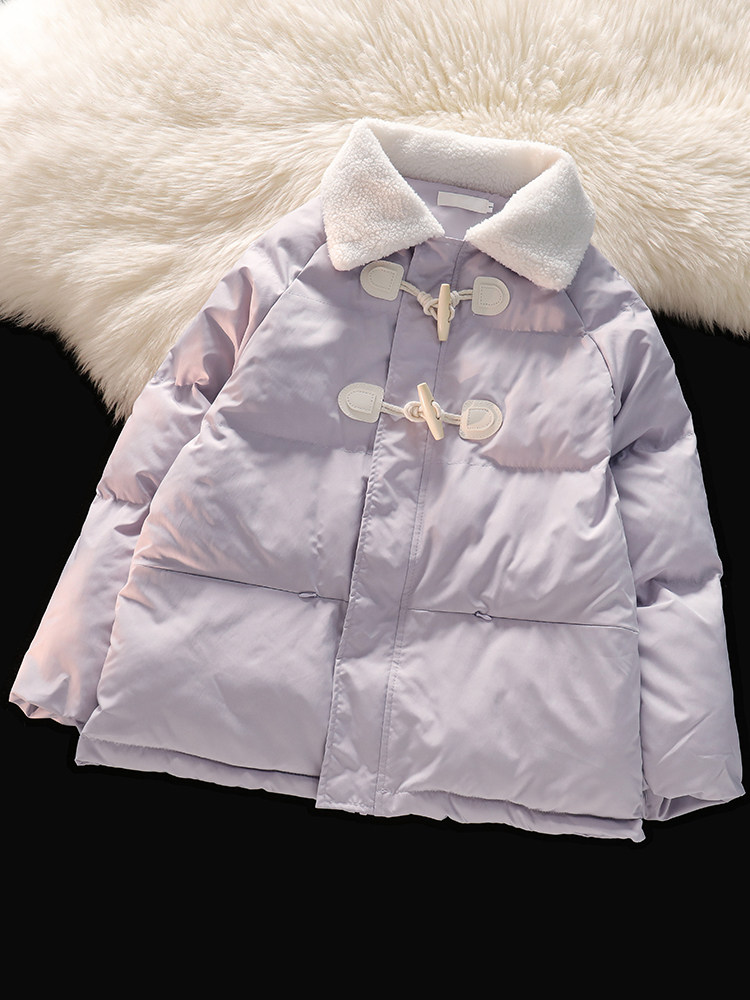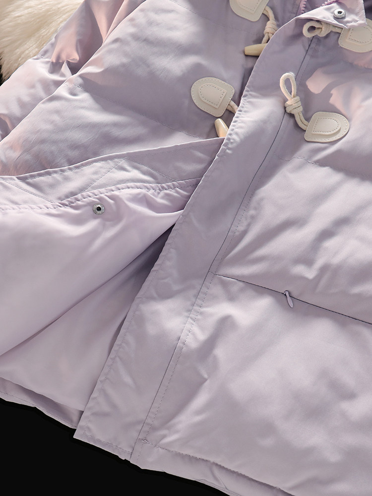 • 商品名称:风度温度两不误!紫色冬季牛角扣棉服女宽松复古小众羽绒服外套潮