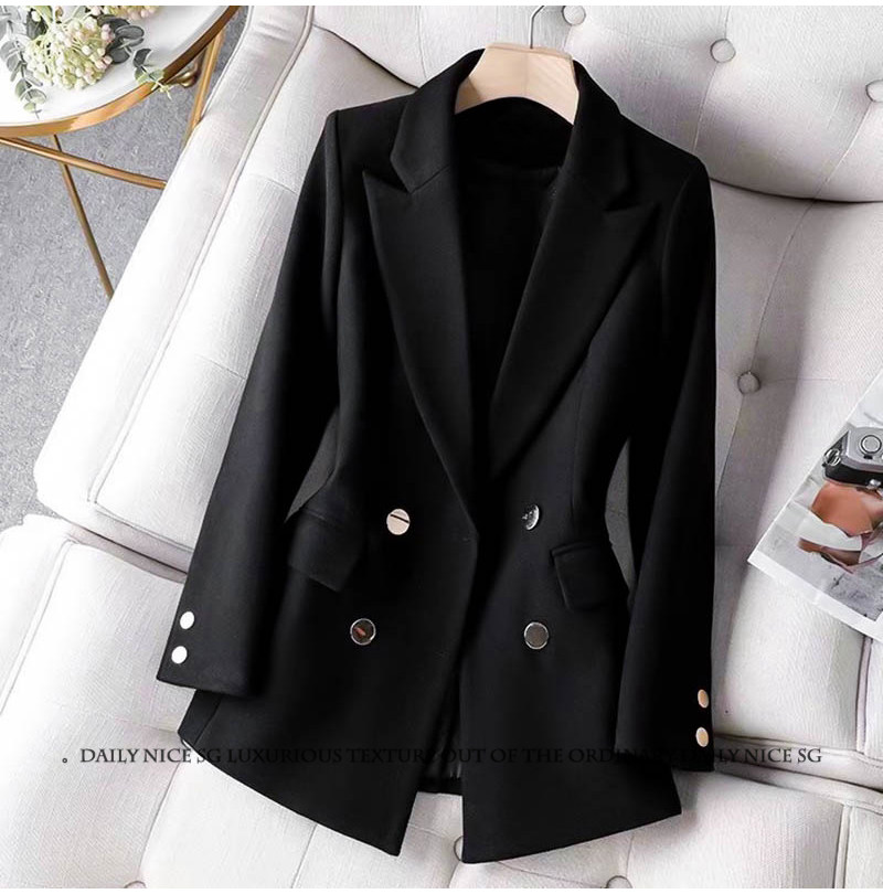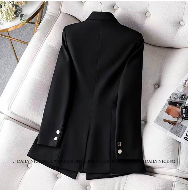 • 商品名称:秋季新款简约百搭气质双排扣修身显瘦中长款小西装外套女西服