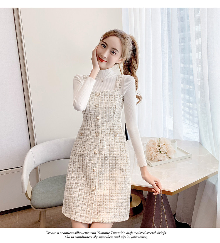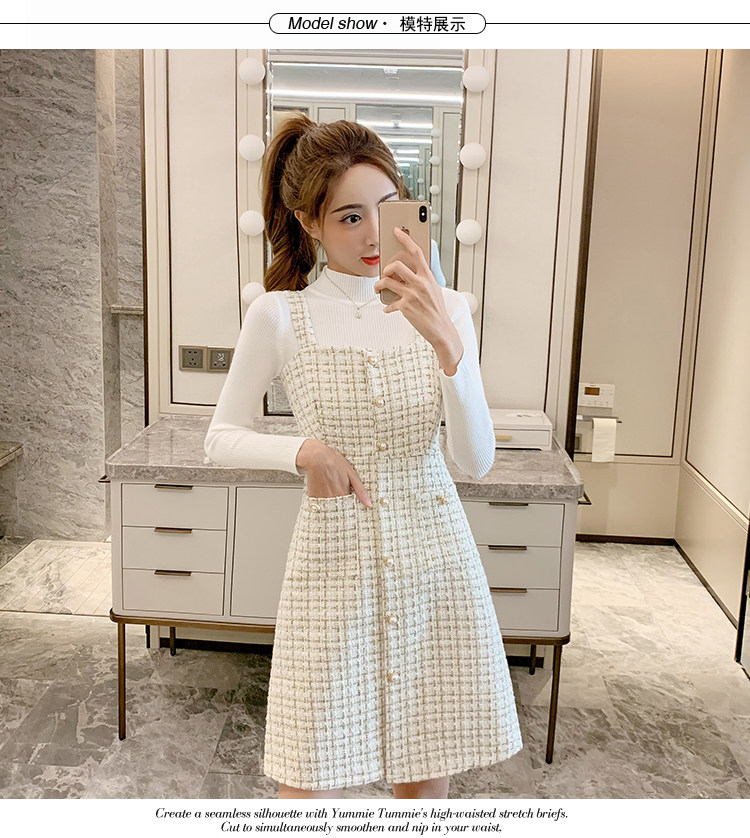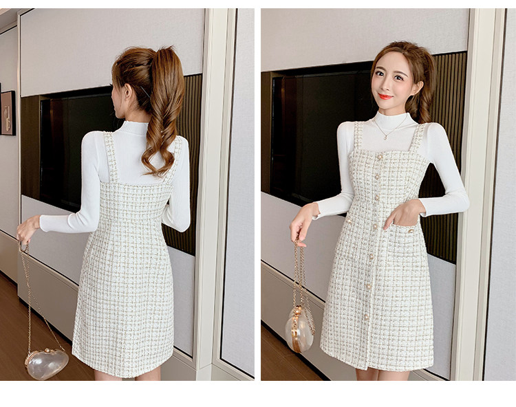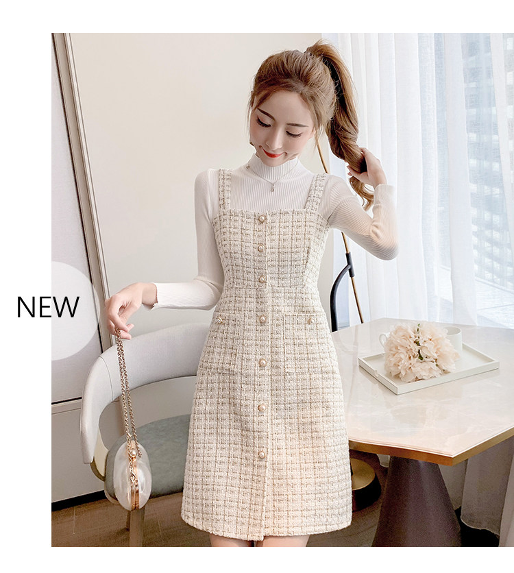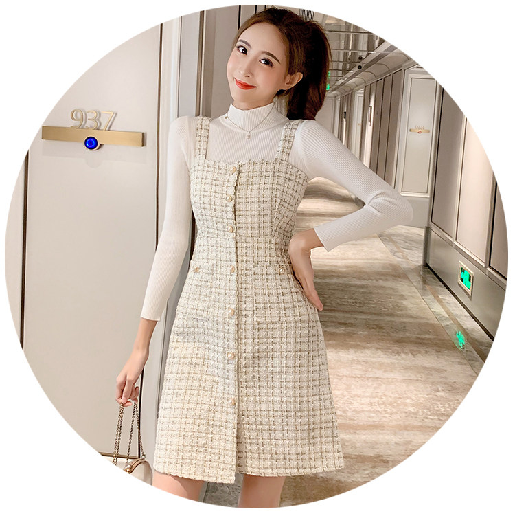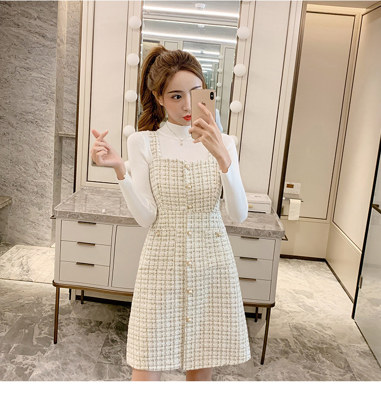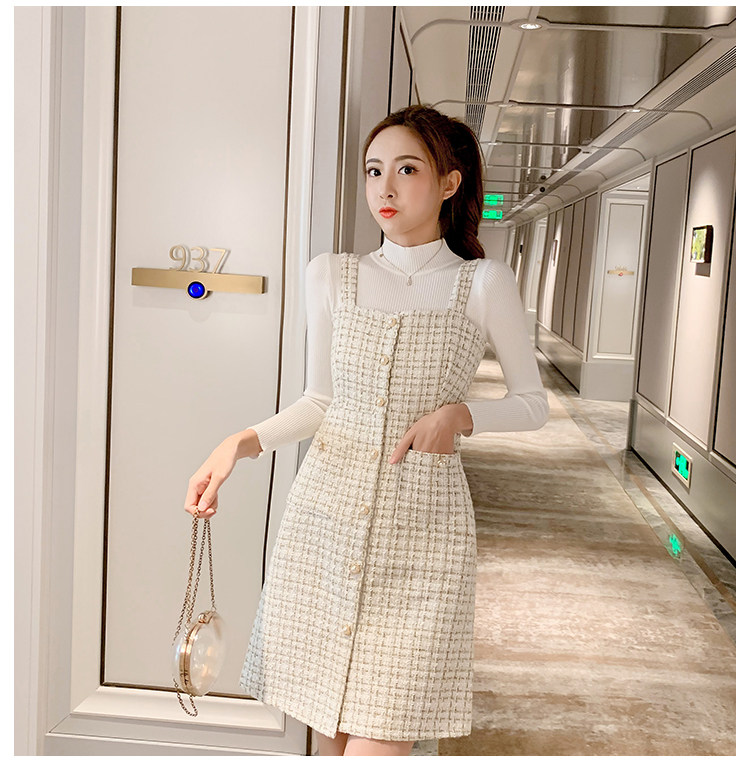 • 商品名称:秋冬季法式新款韩版小香风背心吊带毛呢背带连衣裙两件套装裙