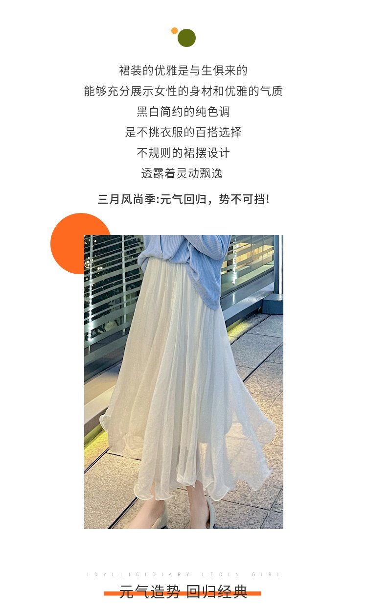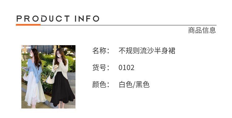 • 商品名称:夏季新款白色纱裙不规则a字网纱半身裙